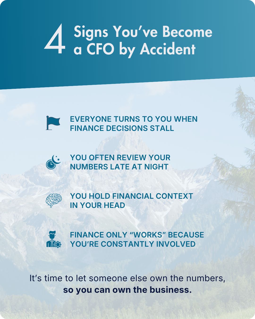 At some point, usually without any decision being made, the finance side of things ends up on the CEO’s desk. It seems easier to just “handle it for now”. It's just the odd report here and there, a quick call with the accountant and one more seemingly important decision that you feel you can't delegate.